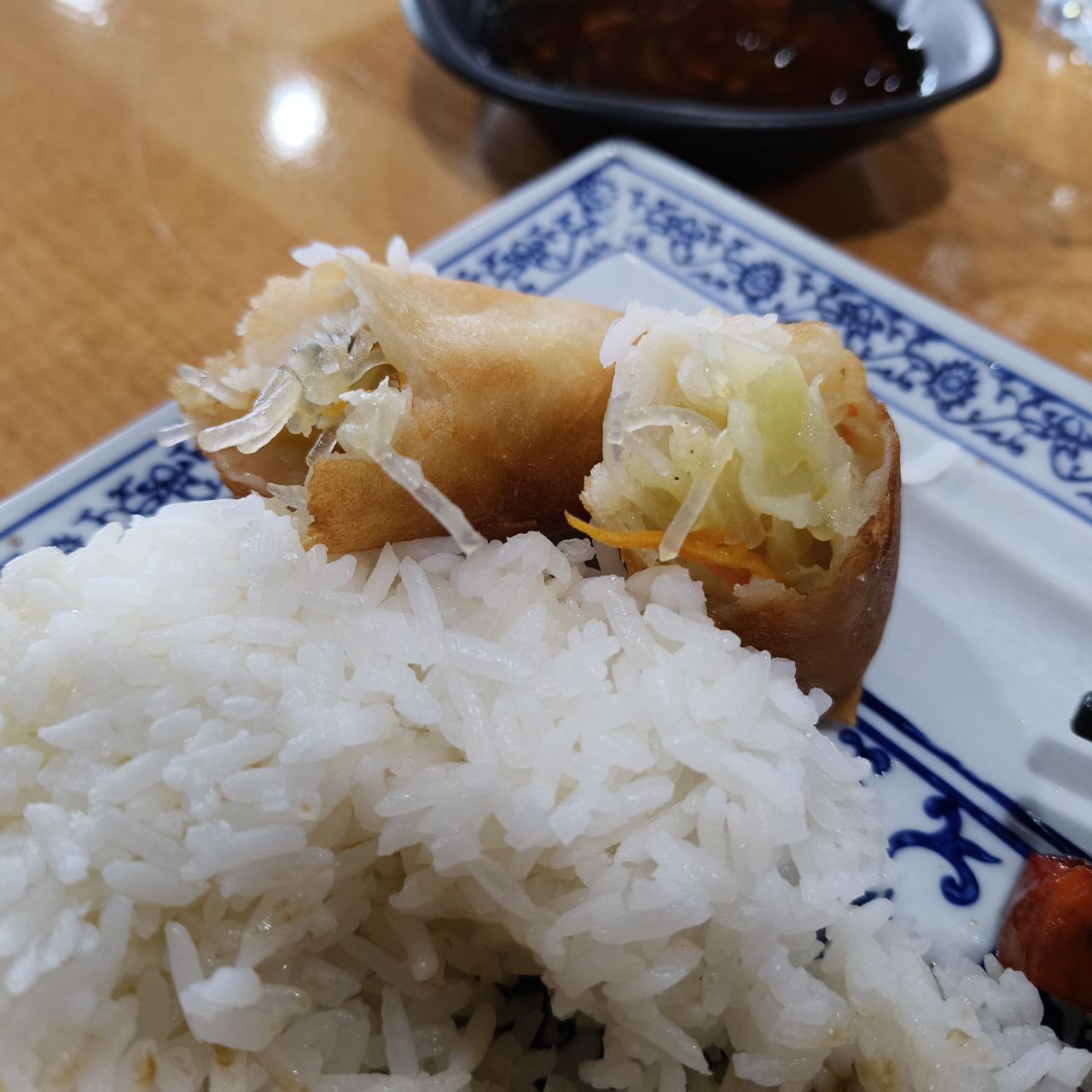 The spring roll was crispy and well-made, but the accompanying sweet and sour sauce leaned a bit too sweet for my taste. No problem—the attentive waitress immediately offered to swap it for mustard sauce, which was a much better match and showed great service flexibility.
